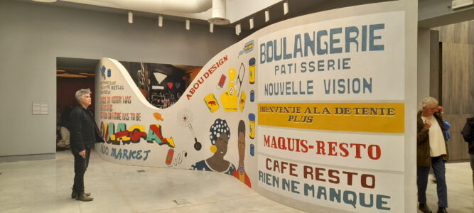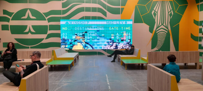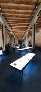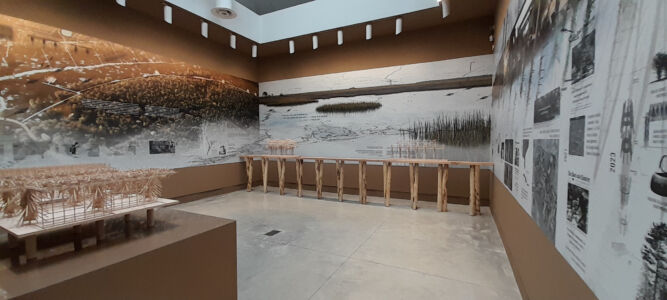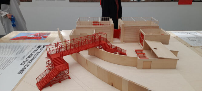 La rassegna si apre e si chiude con aree circolari unite da frammenti del tutto eterogenei e, quando si trova un’area aperta semplicemente allestita come uno studio con tavoli, disegni e modelli illuminati con sempre eleganti Naska Loris a braccio (Flores & Prats Architects), si tira un respiro di sollievo e si riconoscono le amate Corderie. L’autore dell’identità grafica, Fred Swart, viene svelato e siamo così in grado di riconoscerli un progetto corretto che sceglie articolate didascalie a più altezze che disegnano piacevoli skyline sui muri.
