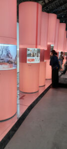 La mostra principale, il Laboratorio del futuro, si esplica come una rassegna di autori, practitioners il termine imperante, che più che progettisti appaiono come autori/artisti, ognuno collocato nel proprio spazio. Ai Giardini il Padiglione centrale è architettonicamente diviso in sale e, quindi, non è difficile dare ad ognuno il suo. Il problema nasce all’Arsenale, ove il superbo spazio delle Corderie eredita il layout del 2022 e viene affettato nella sua lunghezza in tanti spazi quanti ne servono, senza alcuna considerazione (vorremmo dire rispetto) per il luogo. In questo modo le aree (ma potremmo chiamarli stand) vedono apparire le possenti colonne come capita, a volte celate, a volte in vista, a far sparire lo spazio nella sua continuità e qualità.
