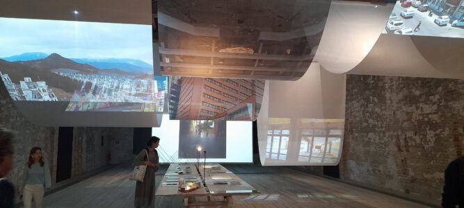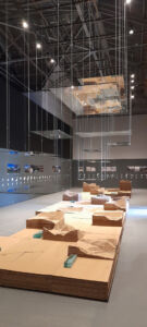 Merce quasi rara l’utilizzo degli spazi per parlare di architettura, città, territorio. Lo fa il Brasile che nel padiglione, disegnato nel 1964 da Amerigo Marchesin, stende un letto di terra compatta che rende evidente il titolo Terra/Earth: il futuro è ancestrale, e vale il Leone d’Oro 2023. Con grande efficacia la Grecia parla delle proprie risorse idriche, naturali e artificiali, rappresentandole su una grande isola centrale con modelli in cartone ondulato e un’elegante grafica alle pareti. La Danimarca illustra efficacemente la tematica delle proprie città costiere e convince più con la qualità della cartografia che con la forza dell’installazione multimediale. La Cina si affida ad una teoria di tubi luminosi, bianchi e rossi, per presentare progetti di rinnovamento urbano e rurale, mentre Taiwan offre una sezione sulle 14 tipologie climatiche del paese come studio del rinnovamento della pratica architettonica grazie alla tecnologia. Israele offre una raffinata lettura del proprio padiglione murato – progetto di Zeev Rechter, 1952 – che rimanda alle architetture tecniche ugualmente chiuse, ma ora desuete, rappresentate con raffinati modelli in microcemento collocati nel patio retrostante per riflettere sulle rivoluzioni tecnologiche in atto. Il Padiglione Venezia ridisegna un’attuale veduta prospettica di Jacopo de’ Barbari per presentare i nuovi progetti legati da un filo attivi in laguna e dintorni. Il Kuwait avvia il processo di riconsiderazione della propria struttura urbana e territoriale nel magico spazio dei Magazzini del sale utilizzando dei teli bianchi appesi che solcano sinuosamente lo spazio offrendo la superficie per eleganti disegni su lucido, a dimostrare che l’Architettura si può fare. E si può mostrare.