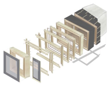 Achim Menges, direttore dell’Institute for Computational Design and Construction (ICD) dell’Università di Stoccarda, ha realizzato nel 2019 una micro abitazione che coniuga i vantaggi della tradizionale costruzione in legno a basso costo con i progressi nella progettazione computazionale e nelle tecnologie di fabbricazione. La direzione perseguita da Menges è quella di un sistema monomaterico, poiché i sistemi edilizi convenzionali contengono una vasta gamma di materiali diversi che spesso implicano costi energetici incorporati molto elevati e sono difficili da separare per il riciclaggio. La sua ricerca si concentra sulla falegnameria tradizionale, sviluppando un sistema basato su elementi in legno per le connessioni strutturali e l’involucro, riducendo al minimo gli strati del sistema e garantendo un raffinato sistema di montaggio, nonché un facile smontaggio per il riciclaggio a fine vita. La IBA Timber presenta una nuova concezione di microarchitettura modulare che, a differenza dell’impilamento orizzontale della tipica costruzione in tronchi (blockbau) a cui s’ispira, impiega gli elementi in legno massiccio disposti nella modalità di telai verticali sfalsati. La fabbricazione digitale è impiegata per produrre giunti ermetici di alta precisione per collegare gli elementi in legno, senza bisogno di fissaggi o adesivi metallici. La progettazione computazionale completamente integrata e l’approccio alla fabbricazione consentono di realizzare pareti e soffitti curvilinei, offrendo la possibilità di massimizzare il rapporto tra spazio disponibile e superficie dell’involucro.