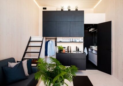 Si tratta di un’abitazione trasportabile di soli 25 mq ideata nel 2016 dallo studio estone Kodasema. Il modulo ha oggi un’ampia diffusione, con circa 30 pezzi venduti a privati e circa una decina per spazi pubblici in tutta Europa, con prevalenza in Germania. Il carattere d’innovazione del modulo non sta tanto nella trasportabilità o nella forma, quanto nella soluzione spaziale interna a doppio livello, nei tempi di realizzazione in situ (che si riducono e variano dalle 4 alle 7 ore), nell’integrazione delle fonti rinnovabili e nella scelta di materiali completamente atossici. Koda assolve inoltre il requisito di flessibilità, poiché il modulo può essere modificato a seconda delle necessità: nasce come abitazione ma può essere configurato come bar, negozio, ufficio o studio.