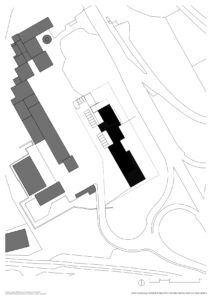 Lo spazio dell’hortus conclusus, costruito insieme al complesso edilizio del Collegio – fondato dal cardinale Borromeo a fine Cinquecento -, è protetto da muri che delimitano la sua geometria, contrapposta all’andamento curvilineo dei muri che delimitano i preesistenti percorsi nell’intorno. Tra i due sistemi di muri permangono spazi residuali. Uno di questi diventa la nuova mensa e le sue mura diventano le mura continue del nuovo edificio. La nuova mensa non modifica la topografia preesistente.