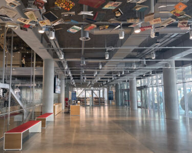 Appena varcata la hall, l’installazione “False Ceiling” del britannico Richard Wentworth accoglie i visitatori. Concepita originariamente per la quarta biennale di Istanbul del 1995, l’opera è costituita da una serie di libri fra i più rappresentativi della cultura occidentale e orientale, sospesi come un tappeto fluttuante di pagine sopra le teste degli avventori: un invito a riflettere sia sulle similitudini e le differenze fra le due culture, sia sull’autorità effettiva del sapere stampato, quando irraggiungibile.