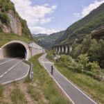 Il luogo stesso che ospita la mostra “Autostrada del Brennero. Architetture e paesaggi” è simbolico, doppiamente. La Galleria Bianca si trova a pochi metri dalla A22 e racconta una storia d’infrastrutturazione e di rigenerazione: con la “sorella” Galleria Nera, costituivano parte integrante del percorso della SS 12, sotto il Doss Trento. Chiuse al traffico nel 2007, dal 2009 – con progetto di Elisabetta Terragni – sono uno spazio espositivo gestito dalla Fondazione Museo storico del Trentino.