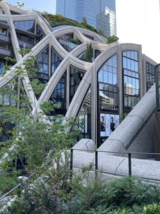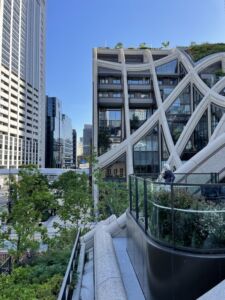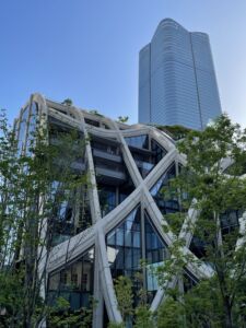 Azabudai Hills, 861.000 mq per un ingombro a terra di oltre 120 campi da calcio, completa un ideale quadrilatero urbano, insieme a Toranomon, Roppongi e Ark Hills, quale centro delle nuove dinamiche commerciali della capitale. L’intervento rimpiazza un quartiere di case basse tradizionali in legno, fatiscenti e in parte abbandonate, sebbene caratteristiche. Le tre torri del complesso, compresa la Mori JP Tower di 64 piani per 330 m di altezza, all’avanguardia per la tecnologia antisismica ed oggi la più alta del Giappone, sono state progettate da Pelli Clarke & Partners (USA); a Heatherwick Studio (Regno Unito) si deve invece il disegno degli spazi esterni, pubblici e dei livelli inferiori.