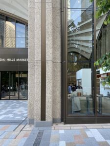 Visitando il complesso si ha la sensazione che il progetto tracci una linea netta fra ciò che lo precede e ciò che invece di nuovo intende rappresentare. Non deve tuttavia stupire: innumerevoli sono gli interventi di questo genere nella capitale, caratterizzati da vasti e massicci complessi commerciali e terziari che convivono accanto a zone residenziali a bassa densità edilizia. Azabudai non fa eccezione, è il risultato di un intervento privato a larga scala che intende “promuovere” la città modificandone massicciamente il contesto.