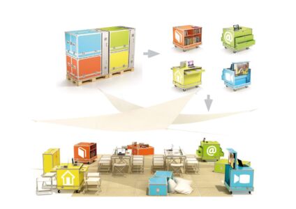 Patrick Weil è una di queste persone intelligenti. Storico e direttore di ricerca presso il CNRS, nel 2007 ha avuto l’idea geniale di fondare una ONG per rafforzare l’accesso all’informazione, all’istruzione e alla cultura in tutto il mondo denominata Bibliothèques sans frontières (BSF), con sede dal 2021 anche in Italia. L’idea di abbattere le barriere della cultura si è potuta concretizzare qualche anno più tardi grazie all’acume creativo (nonché all’intelligenza) di Philippe Starck con la realizzazione di Ideas Box, una libreria portatile e un centro multimediale pop-up che può essere facilmente spedito, indipendente dal punto di vista energetico. In sintesi, una mediateca mobile, in kit, che si apre in meno di venti minuti per configurare uno spazio culturale di 100 mq comprensivo di un ampio tappeto. Dotata di connessione internet via satellite, un server digitale, un generatore di corrente, 25 tablet e laptop, 6 fotocamere HD, un grande schermo HD, giochi da tavolo, materiali per arti e mestieri, libri e un palco per musica e teatro, questa scatola è una fantastica cassetta degli attrezzi da cui bambini e adulti possono attingere ovunque in aree disagiate come campi profughi, comunità isolate, spazi urbani disserviti e terre remote di popolazioni indigene. Al progetto ha collaborato l’Alto Commissariato delle Nazioni Unite per i rifugiati (UNHCR). Ogni set di moduli e unità di stoccaggio viene spedito su due pallet standard.
