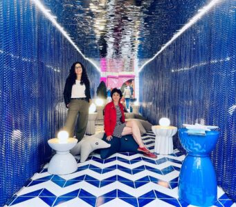 Un pannello composito in alluminio con anima minerale incombustibile, certificato classe A2 per la reazione al fuoco. La finitura a specchio scelta per questo progetto permette giochi di riflessione e profondità spaziale, ampliando visivamente l’ambiente. Oltre al valore estetico, offre un’elevata stabilità dimensionale, resistenza agli agenti atmosferici, durabilità e leggerezza, fondamentali per installazioni temporanee e reversibili.