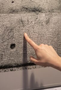Fernando Oreste Nannetti (N.O.F.4), Giuseppe Righi, Paris Morgiani, ZAP sono alcuni degli artisti esposti e che esplorano un “vocabolario del fuori” fatto di intersezioni tra architettura, arte, psichiatria e storia sociale, esaminando il modo in cui lo spazio di reclusione ha dato forma ad un immaginario architettonico e artistico capace di resistere alle dinamiche di potere dell’istituzione totale. L’ospedale psichiatrico San Lazzaro di Reggio Emilia, il San Niccolò di Siena, l’ospedale psichiatrico di Volterra e il San Giovanni di Trieste sono le principali strutture manicomiali in cui le opere esposte sono state concepite: disegni, sculture e graffiti che rispondono ad un profondo atto di resistenza – un’affermazione identitaria contro la disumanizzazione dei luoghi della reclusione psichiatrica.
