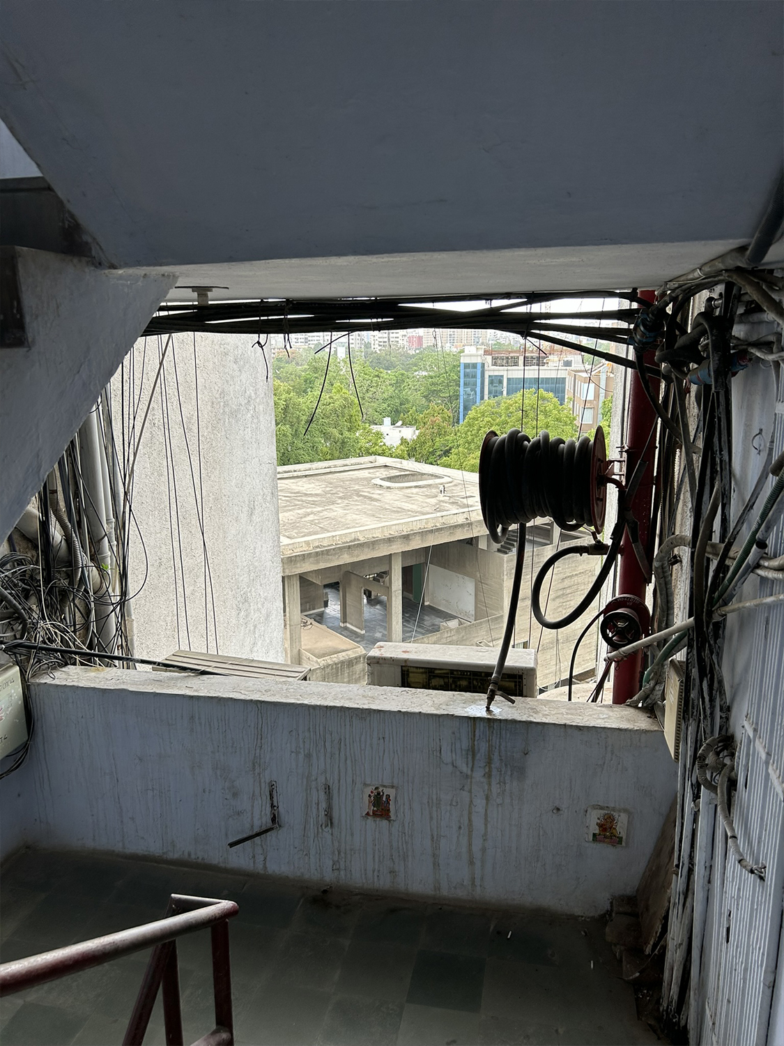 Non godono delle stesse attenzioni riservate alle architetture di Doshi quelle di Le Corbusier. Il Mill Owner’s Building è ormai un’affascinante rovina in cemento armato: se ne sta lì, vuoto, e lentamente cede ai gocciolii dell’umida Ahmedabad. Il custode ci apre e ci lascia liberamente visitare la struttura che, dopo 70 anni di servizio, sembra l’herzoghiana nave di “Fitzcarraldo” ormeggiata sulla trafficata Ashram Road.