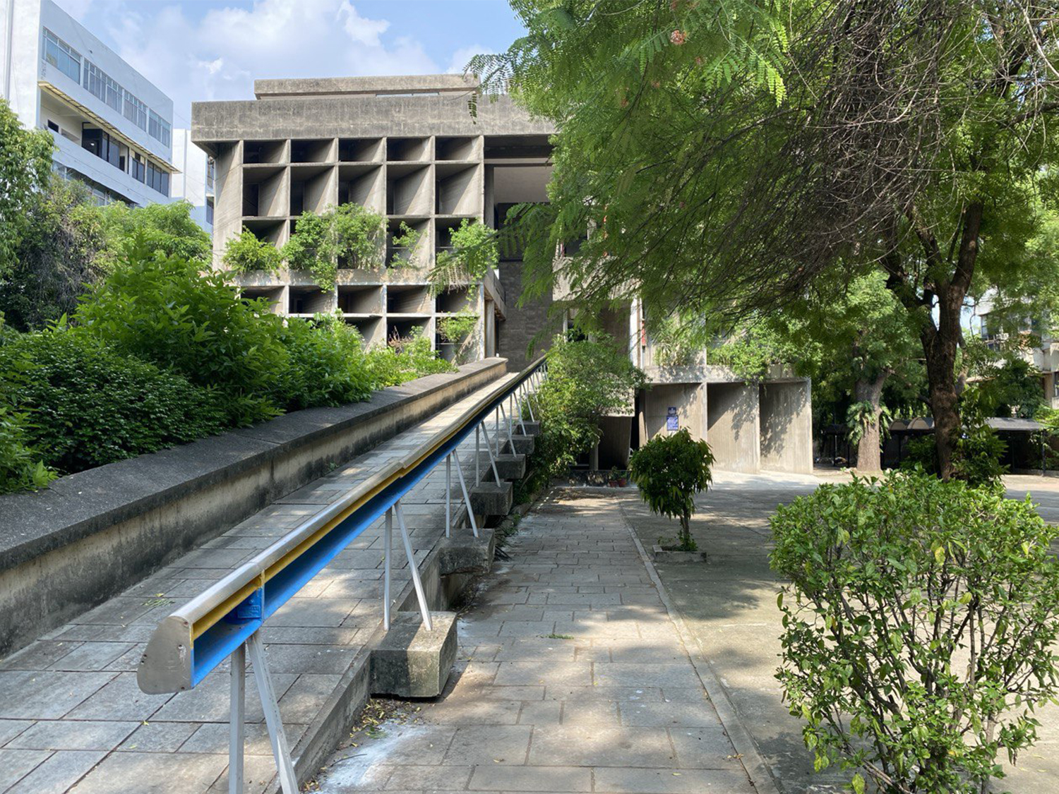 È difficile visitare anche il Centre for Environmental Planning and Technology (CEPT), progettato da Balkrishna Vithaldas Doshi: il poco tempo messo a disposizione ai visitatori (se accettati) non permette di esplorare tutto il campus. Anche qui, nel 2015, ci sono state forti proteste per l’intervento di riorganizzazione con l’inserimento della biblioteca progettata da RMA Architects. Al di là delle comprensibili critiche di principio, lo studio RMA è riuscito a portare all’interno del progetto la complessità urbana con cui Doshi aveva disegnato gli altri fabbricati. L’intervento nulla toglie all’edificio originale: la capacità di fronteggiare le necessità climatiche e i limiti tecnologici e costruttivi dell’India degli anni Sessanta dà forma a una scuola dal forte carattere urbano e capace di insegnare l’architettura vivendola.