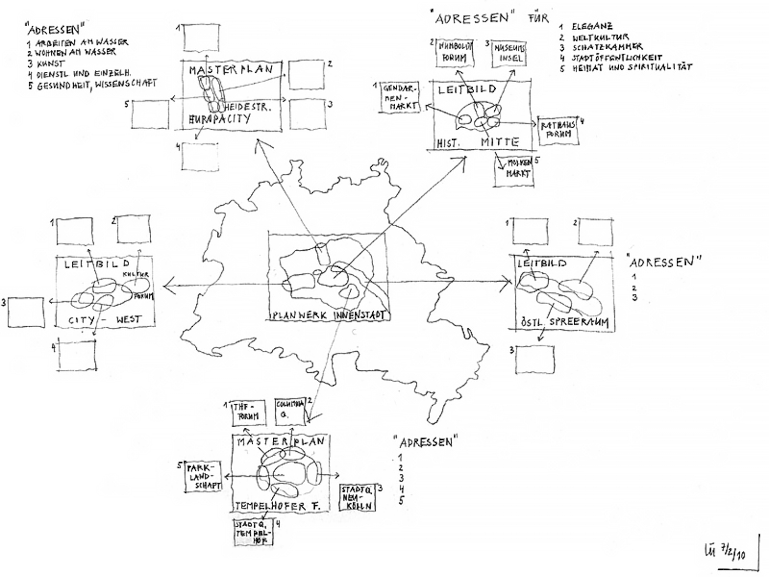 Nella storia recente due importanti programmi urbanistici, l’Interbau (1957) e l’IBA (1984-1987), avevano già provato ad ovest, da punti di vista opposti, a proporre una visione per la ricostruzione mentre, ad est, l’architettura della città comunista decade velocemente dal monumentalismo della Stalinallee al pauperismo funzionalistico dei Plattenbau (prefabbricazione pesante).