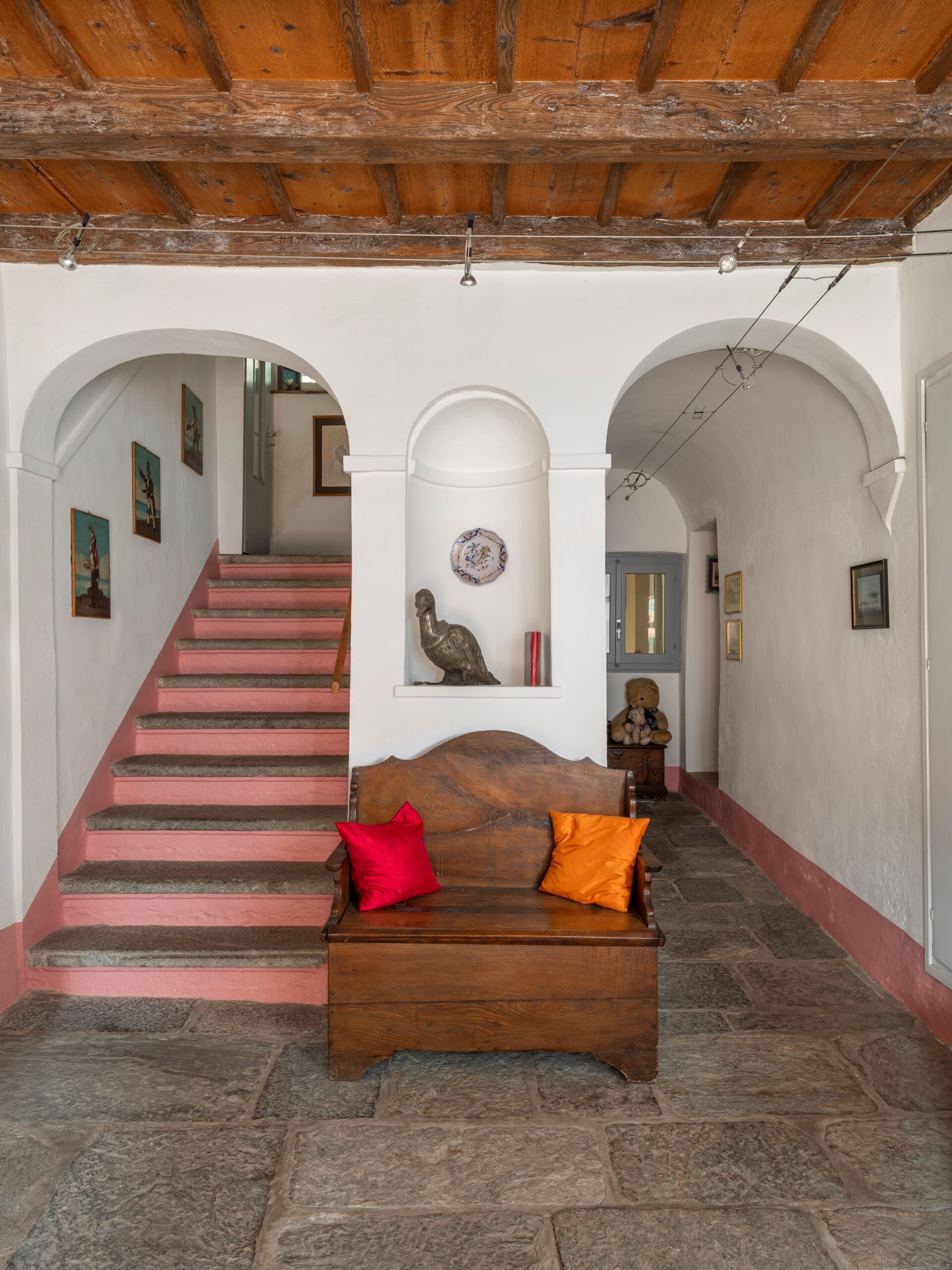 Oggi, il MASI ricostruisce quell’esperienza attraverso fotografie, lettere, disegni, oggetti d’uso e arredi, restituendo il senso di una casa come spazio mentale e collettivo. L’allestimento, discreto e narrativo, è costruito come una sequenza di stanze: ognuna evoca un frammento dell’abitare. Le pareti non impongono, ma accolgono; i tavoli diventano archivi; le luci – basse e domestiche – suggeriscono un ritmo lento, da casa vissuta. Qui il design dell’esposizione diventa architettura della memoria, una riflessione sull’idea di casa come organismo poroso, in cui l’opera e la vita si fondono. È lo stesso spirito che abitava la casa di Meret Oppenheim a Carona, rifugio e atelier, oggi parte del patrimonio simbolico ticinese: una costruzione semplice ma intrisa di presenze, capace di ospitare scambi, ospitalità, arte.