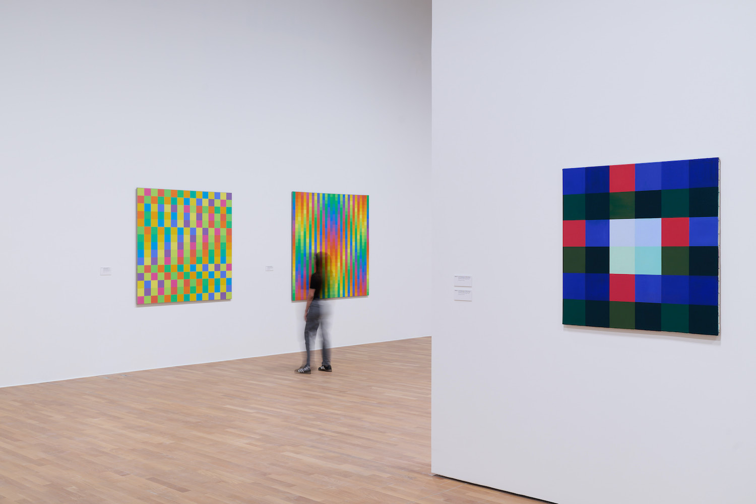 In mostra, le sue composizioni modulari vengono disposte come sequenze architettoniche, in cui ogni quadro dialoga con il successivo. Le opere di Lohse non sono soltanto esercizi pittorici: sono progetti di spazio, mappe concettuali che hanno influenzato profondamente anche il pensiero architettonico dell’epoca. Molti progettisti, dalla scuola ticinese fino agli ambienti del razionalismo svizzero, riconoscevano in quelle griglie una lezione di metodo: la costruzione come processo modulare, l’equilibrio tra variazione e regola. L’allestimento al MASI enfatizza questa dimensione progettuale: i pannelli diventano piani di misura, le distanze tra le opere scandiscono un ritmo percettivo. Si ha la sensazione che la pittura diventi architettura, che la sala si trasformi in uno spazio costruito dal colore.
