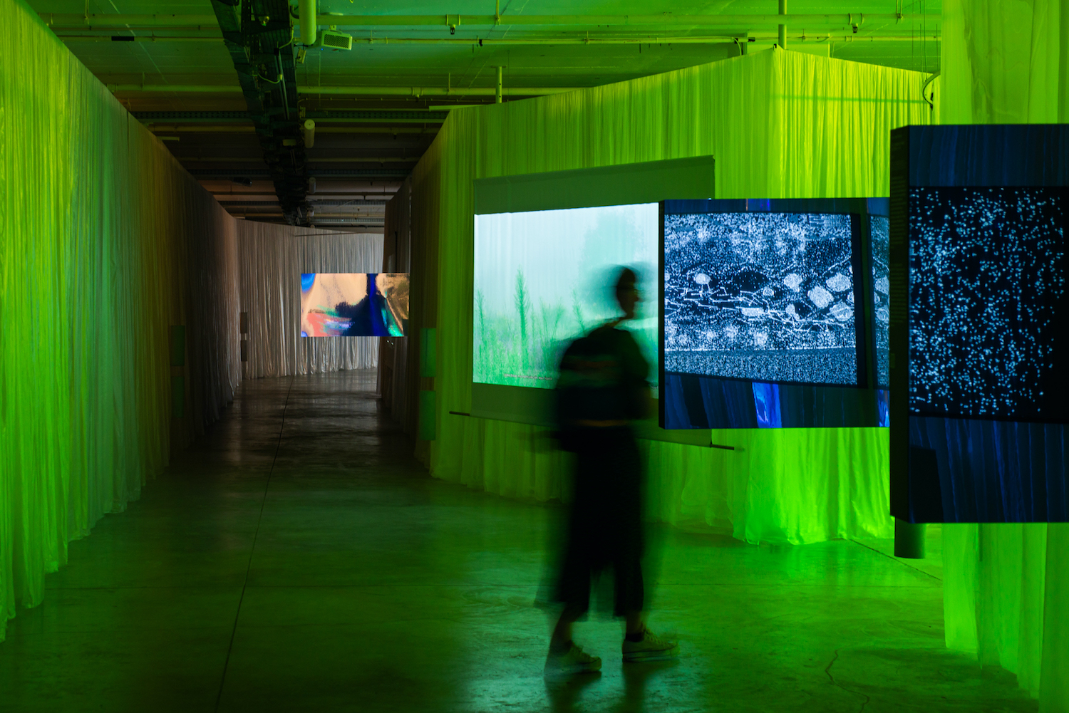 Schermi sospesi, dati satellitari, mappe e visualizzazioni trasformano le esposizioni in dispositivi di lettura critica della realtà. In particolare, al MUDE emerge con chiarezza il metodo della Territorial Agency, basato sull’uso di tecnologie di rilevamento remoto per analizzare i territori e i loro processi invisibili.