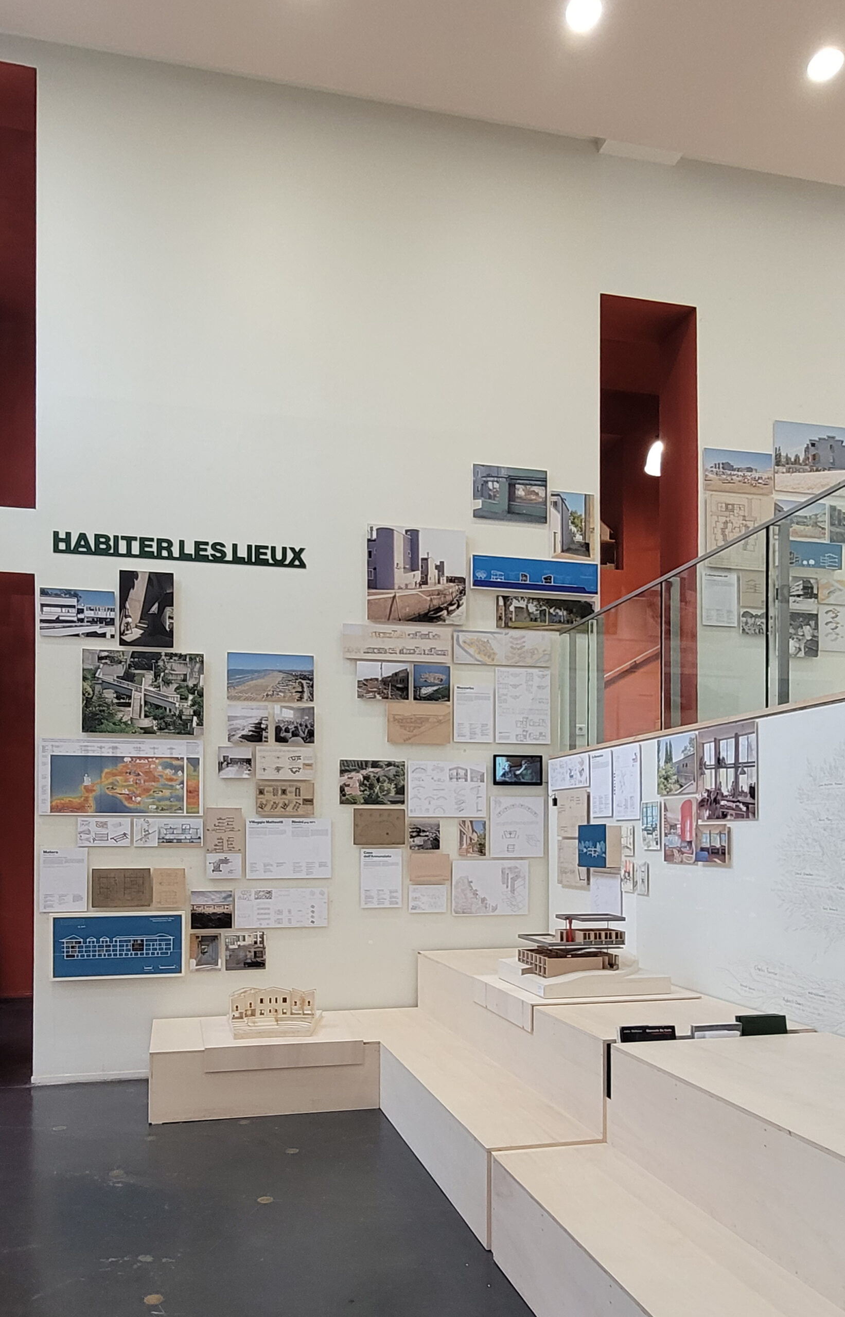 studenti del master post-laurea Architecture et Scénographies, della medesima Facoltà. In continuità con la dimensione collettiva e processuale che permea l’intero progetto espositivo, l’allestimento – dai gradoni in legno ai supporti per il materiale esposto – è interamente autocostruito all’interno dell’atelier bois della Facoltà, un laboratorio di eccezionale qualità artigianale che ha reso inoltre possibile la realizzazione di alcuni dei modelli presenti in mostra.