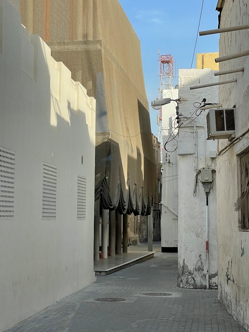 Ciò che oggi appare estraneo e astratto sarà gradualmente ammantato di polvere, segnato dal sole e sfumato dalle ombre sabbiose dei vicoli. Saranno proprio queste imperfezioni a conferire ai nuovi volumi una nuance inattesa, rendendoli elementi naturali di un tessuto vivo, come se il tempo e la vita quotidiana di chi attraversa Al-Muharraq li avessero finalmente adottati. La loro apparente dissonanza si trasforma così in armonia: un dialogo silenzioso tra audacia contemporanea e sedimentazione del tempo, che solo l’esperienza diretta, la polvere e la luce dei luoghi possono davvero raccontare.