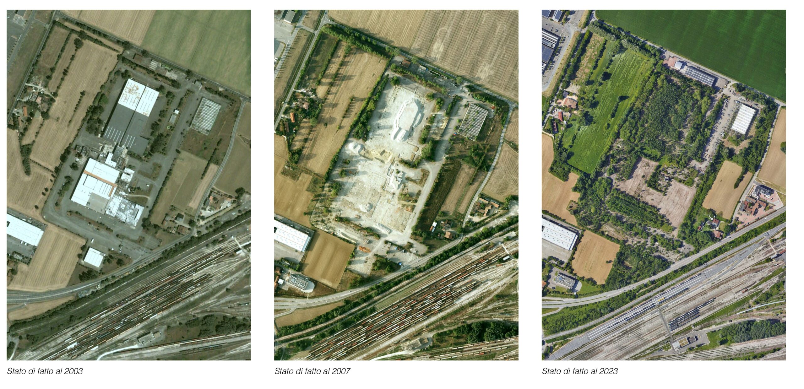Oggi è un insieme eterogeneo, esito di aggiunte che di volta in volta hanno corrisposto a esigenze localizzative di tipo funzionale alla scala sovralocale, ma estranee e separate le une dalle altre, galleggianti in un mare di asfalto costituito da parcheggi e svincoli che servivano un centro agroalimentare sovradimensionato. Una tipica periferia moderna che il Piano territoriale della Provincia all’inizio degli anni Duemila riconosceva come “Polo funzionale”, facendovi rientrare le aree dismesse del mercato-macello comunale ex ASAM e quelle non urbanizzate prossime al Meraville (Aree Annesse sud), in seguito interessate da un piano di lottizzazione a destinazione commerciale (la prima) e da un piano di attuazione a destinazione residenziale (la seconda).