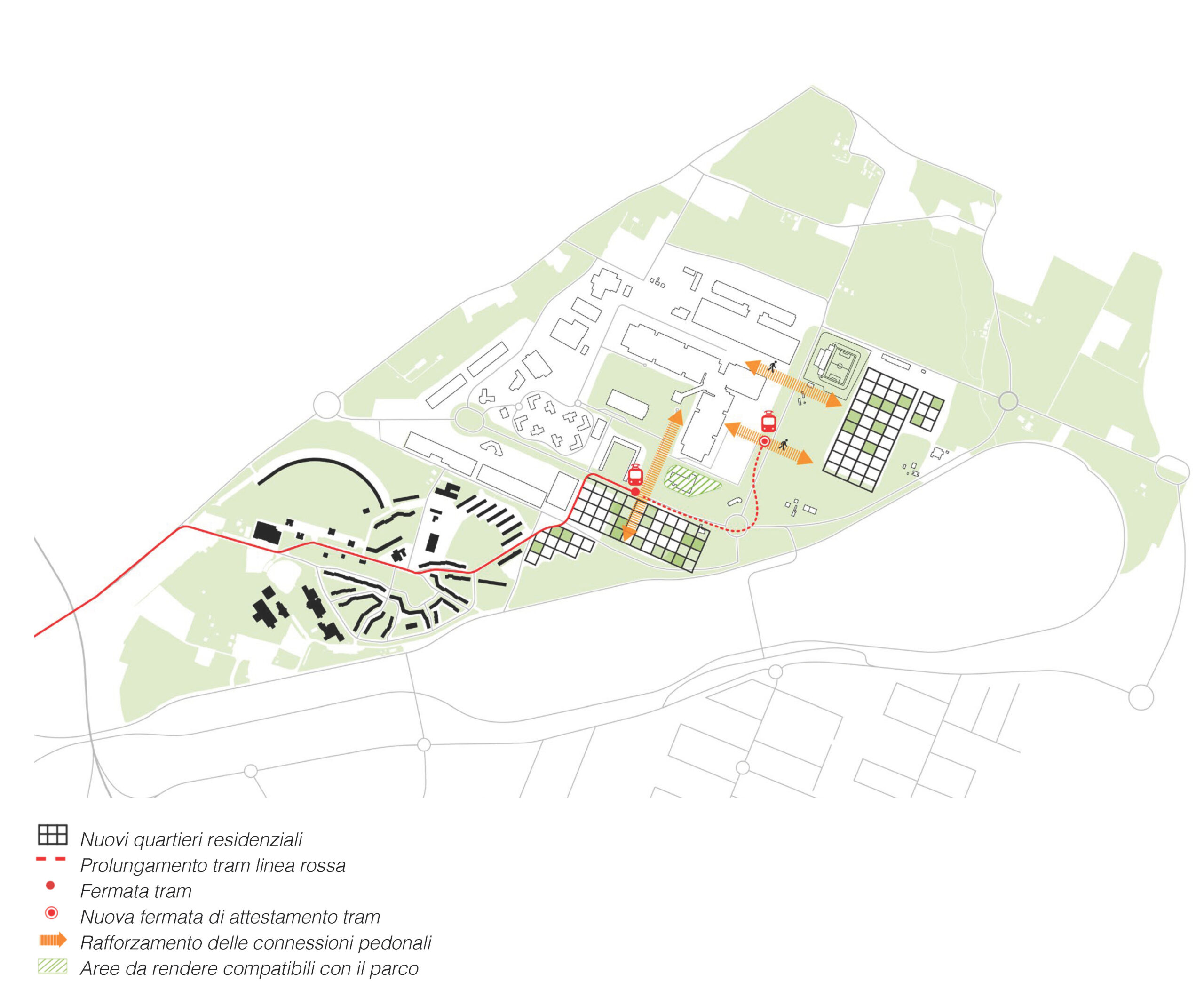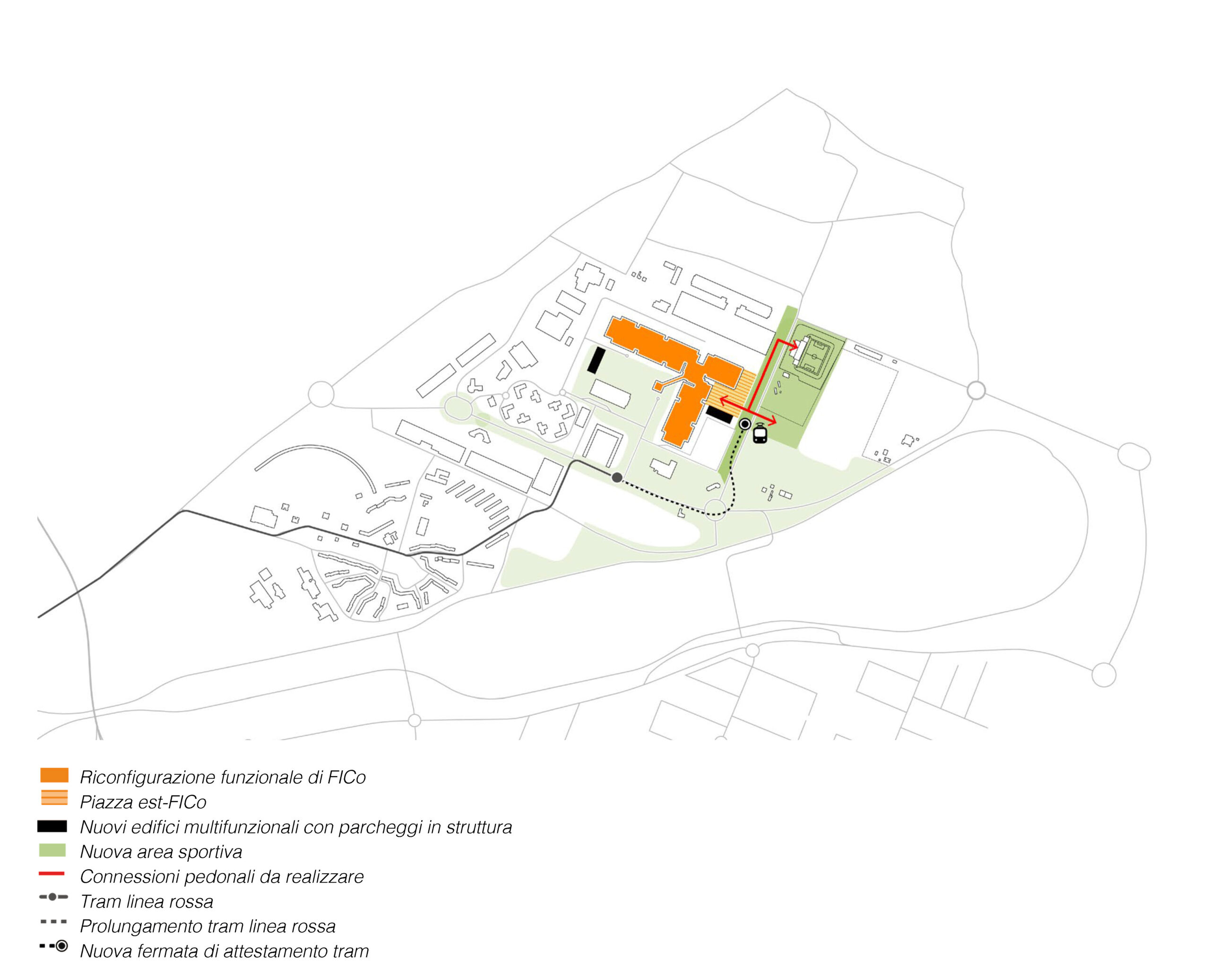 Dopo alcune ipotesi iniziali a partire dalle destinazioni d’uso previste nel piano attuativo vigente (commerciali), si è affermata la convinzione che la residenza stabile fosse indispensabile per trasformare in un’area urbana, vivibile a tutti gli effetti, quel che l’impostazione dell’urbanistica novecentesca ci consegnava come assemblaggio di attrattori specializzati e autoreferenziali. Questa idea, già suggerita nel Piano urbanistico generale del Comune che ridefiniva il polo funzionale CAAB come “polo metropolitano integrato per grandi eventi e sport”, è sembrata corrispondere alla necessità di una offerta abitativa a prezzi abbordabili, adeguata alle domande emergenti che l’Amministrazione considerava nei suoi programmi (case accessibili per lavoratori – prevalentemente giovani – del Tecnopolo e di altre imprese di nuova generazione, studenti, anziani).