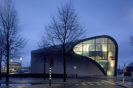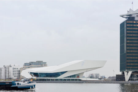 Sul waterfront è stato applicato un metodo “a cannocchiale”, in cui gli edifici pubblici si fronteggiano creando una sequenza di icone urbane e punti di riferimento. Sulla sponda settentrionale del porto IJ, in direzione della stazione, nel 2012 è stato inaugurato EYE Filmmuseum progettato da Delugan Meissl Architects, il cui interno rivela spazi mutevoli esaltati dalle luci di Olafur Eliasson. L’edificio poggia in parte sul terreno bonificato per attuare il piano di sviluppo di Overhoeks che accoglie anche A’dam Lookout, la torre ex sede della Shell inaugurata nel 1971 che dal 2016 ospita spazi per la musica, bar, ristoranti e una terrazza panoramica. Sulla riva di fronte sorge il complesso multifunzionale IJ Dock, disegnato da Bjarne Mastenbroek & Dick van Gameren, che ospita anche l’iconica Netherlands Commercial Court disegnata da Claus en Kaan Architecten.