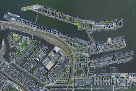 Tra il 1988 e il 1996 a KNSM Eiland, dopo la dismissione dei docks, si realizza il primo grande intervento di trasformazione urbana progettato da Jo Coenen e Sjoerd Soeters rileggendo la tradizione urbanistica di Amsterdam dei grandi isolati. Di fronte, l’intervento Borneo Sporenburg disegnato da West8 tra il 1996 e il 2000 nella parte est del porto inaugura invece gli interventi paesaggistici a scala urbana. Inserendosi nel percorso che contraddistingue la sperimentazione neerlandese, più recentemente, Kees Kaan ha inquadrato i suoi importanti interventi urbani, tra cui il nuovo Palazzo di giustizia di prossima inaugurazione, nella strategia “Amsterdam Resilient City” che, segnando una frattura coi piani di van Eesteren e Berlage, traccia una strada in cui l’architettura a scala urbana occupa un ruolo centrale nel ripensamento della città.