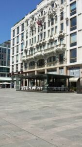 Alla medesima azienda piemontese va ascritta la realizzazione del pavimento di piazza Liberty a Milano, proprio dietro il Duomo, dove sono invece state posizionate piastrelle a spacco naturale, coste segate e colore omogeneo, con formati di 25/30/40 cm a correre e spessore tra i 4 e i 6 cm per garantire la piena carrabilità.