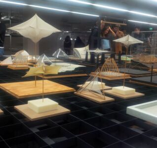 The model stands as a junction of arrival and re-start for the drawing. In models, manual and empirical knowledge integrate with the coding of architectural pre-algorithms condensed in the membrane: not a technical-structural shell for wrapping contents, but rather a receptive skin-tent, that recovers in the word “pneumatic” the physical-chemical action as a principle of life, of breath. Within the models rib cage, optical nerve, and tactile sensation move simultaneously, stimulating each other in the understanding of the form, getting lost in Frei Otto’s cognitive leaps, with the awareness of being in an area crowded with many inhabitants. A porous area, with frayed contours, without circuit and with many accesses, of which many apparently casual. Thinking in models becomes a declination for those looking for a guide to explore the exhibition, touching its salient knots in the model-module’s oscillation that contains the German word Model. From increased reality, to the mystery of soap bubbles (watch the video!), to the full-empty overturning in convexity and concavity, to the properties of matter, to the passage of the idea in construction, as in the Tenda pavilion in Kassel in 1955, to the regeneration of research, entrusted also to models as synergic and reactive means, which students can experience first-hand. “The majority of architects think or used to think in drawings, because nowadays they think on computer screens -said Frei Otto to the magazine of architecture Icon in 2005- I, instead, was always trying to think three-dimensionally. My brain’s inner eye is not supposed to be flat, but three-dimensional, so that each thing becomes an object in space. Because, we don’t live in a two-dimensional world.”