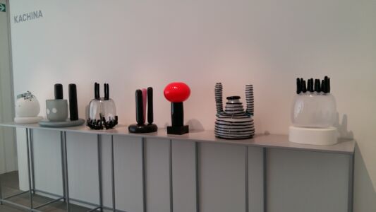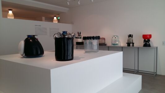 Il grosso della produzione vetraria di Sottsass realizzata per Vistosi, Toso, Venini, Alessi, Baccarat, Egizia, Fontana Arte, Zani, Swarovski e altri data dalla seconda metà degli anni settanta in avanti. Tuttavia a monte di essa sta un’attività multiforme e a dir poco ponderosa che pur una mostra molto specifica non può tacere. Un dinamismo fatto di peculiari contributi critici, rilevanti realizzazioni nel campo del disegno industriale ancor più che in architettura e di forti impulsi addensatisi in singolari riviste d’avanguardia, come ad esempio in “Room East 128. Chronicle” o “Pianeta Fresco”, realizzate con la moglie Fernanda Pivano. Di tutto ciò in mostra non v’è traccia, se non nell’eccellente e originale selezione di volumi specifici a disposizione nel bookshop.