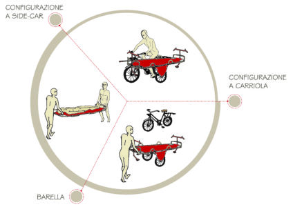 Descrizione: Flamingo è una bici-ambulanza adatta a terreni in cui i mezzi tradizionali non possono accedere e permette al soccorritore di monitorare costantemente il paziente. Il design è opera della designer Marta Alice Fattorossi e del Prof. Francesco Trabucco, inventori del gancio di attacco dell’ambulanza alla bicicletta protetto da un brevetto del Politecnico di Milano, sviluppato con SIT Milano.