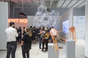 Completato in soli 9 mesi, si tratta di una teca in policarbonato di circa 20 x 30 metri, alta 8 metri e priva di partizioni all’interno, per consentire la massima libertà di utilizzo. Il padiglione, interamente bianco e diafano, ad esclusione della copertura, riceve la luce diurna così come cede quella degli eventi serali, contribuendo a vivacizzare il contesto periferico ove l’intero Opificio è incastonato senza però lasciarvisi condizionare, perchè l’ampio volume è sì permeabile alla luce ma non alla visione, dimodoché la sola concentrazione possibile è quella sulle esposizioni. Ogni altro elemento è lineare, semplice e bianco, per sfuggire ad ogni appariscenza e continuare a catalizzare l’attenzione dei visitatori sul contenuto e non sul contenitore, destinato a vedere la rotazione delle mostre e delle collezioni, a partire da quella di Marino Golinelli, tra i più importanti estimatori di arte contemporanea. E, in linea con il sogno di Golinelli (e anche con un Paese che ha davvero bisogno di proiezioni positive), il padiglione è stato inaugurato con la mostra “Imprevedibile-Essere pronti per il futuro senza sapere come sarà”, intreccio di arte e scienza per promuovere del futuro un’intuizione, ma soprattutto un’immagine incoraggiante, come suggerisce la scritta al neon che accompagna all’uscita, “Don’t worry”, opera di Martin Creed (Work no. 2833 – 2017).