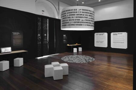 L’esposizione, con l’intento dichiarato di occuparsi del mondo, è organizzata in una sequenza complanare, con una sorta di preambolo fisico-percettivo che è un passaggio a zig-zag fatto di blocchi di calcestruzzo che rievocano anche la temporaneità degli assetti metropolitani contemporanei. Procedendo nella visita, la narrazione si addensa alle pareti – con foto raccolte attorno a parole-chiave – mentre al centro una cronologia viene offerta come base di riferimento, nonchè come elemento organizzatore dello spazio per orientare il percorso di fruizione. Più avanti trovano posto un iPhone gigante ed altri elementi descrittivi, giusto prima di una serie di video che raccontano cinque storie di “Passagens” in Africa; da notare che i video stessi sono stati prodotti in Africa attraverso una modalità di concorso e coinvolgimento locale. Medesima volontà d’interazione percorre la sezione che raccoglie alcuni dei materiali del workshop con gli studenti – pure ibridato con modalità concorsuale – tenutosi a San Paolo nei mesi scorsi avendo per tema il Jardim Angela; quest’ultimo un luogo che almeno con Google Earth va visto.