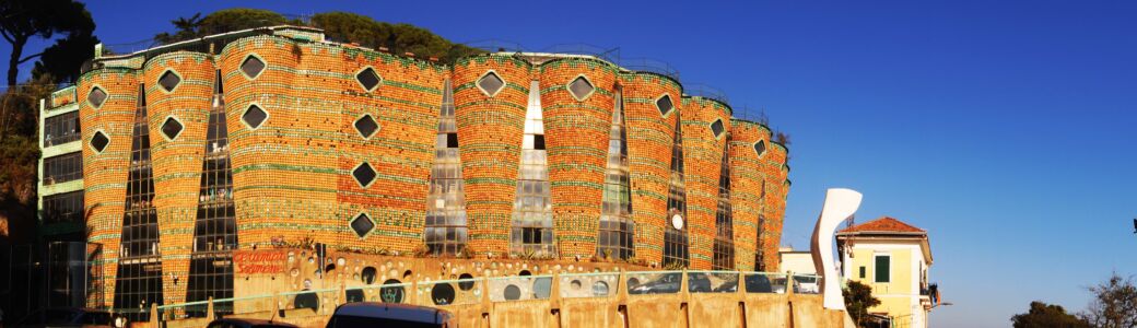 Si rivela compiuta a Vietri l’operazione complessa e coraggiosa di una difficile fusione fra le idee rivoluzionarie di Wright, rinvenibili negli spazi unici a tutt’altezza, luminosi e fatti di potente struttura, quelle di Antoni Gaudí, e l’antica tradizione italiana, barocca e romana. A questo va aggiunto lo straordinario apporto della componente locale artigianale, esplicitata nel trattamento onirico della facciata. Una veste che è «super mosaico», o «super opus reticulatum» reinterpretato tridimensionalmente a partire dai cilindri cavi in ceramica color terra. L’impatto potente desunto dalla tradizione romana viene stemperato, e reso paesaggisticamente integrato, dalle tinte marrone e verde degli smalti brillanti cotti in loco.